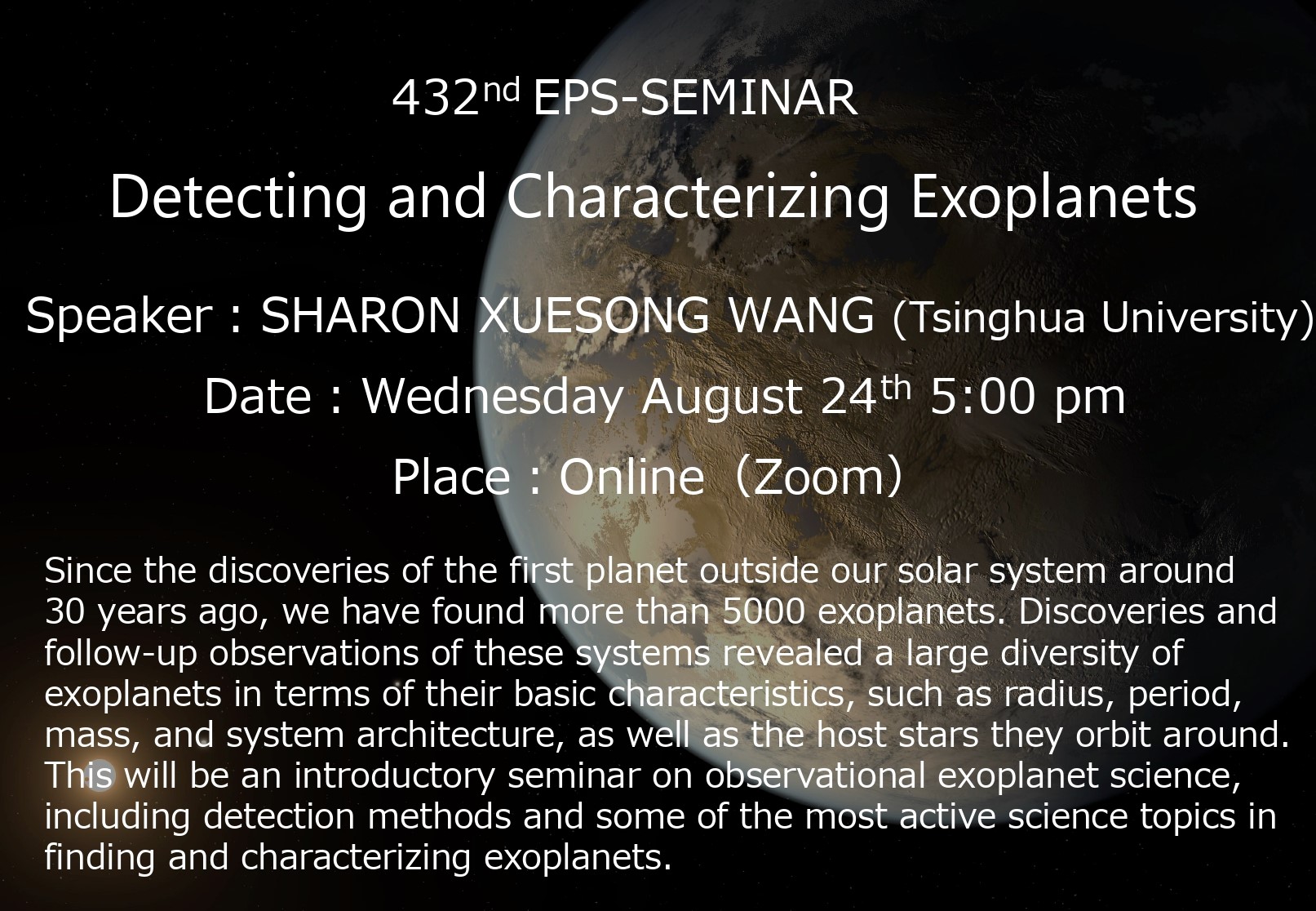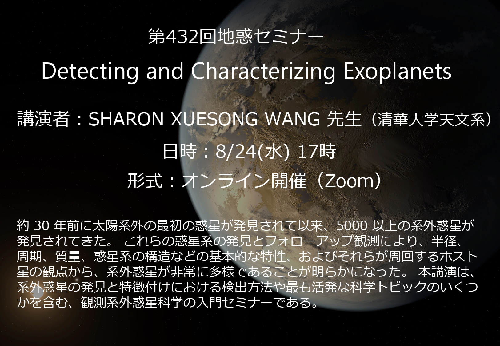 (約 30 年前に太陽系外の最初の惑星が発見されて以来、5000 以上の系外惑星が発見されてきた。 これらの惑星系の発見とフォローアップ観測により、半径、周期、質量、惑星系の構造などの基本的な特性、およびそれらが周回するホスト星の観点から、系外惑星が非常に多様であることが明らかになった。 本講演は、系外惑星の発見と特徴付けにおける検出方法や最も活発な科学トピックのいくつかを含む、観測系外惑星科学の入門セミナーである。)